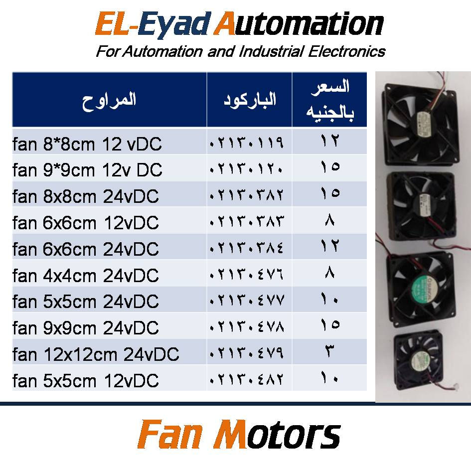 مراوح 12 فولت و 24 فولت مقاسات مختبفة